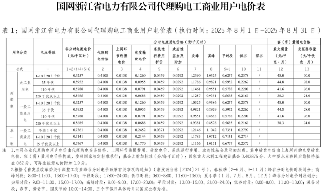 8月13日,浙江省发改委发布《省发展改革委省能源局关于优化迎峰度夏期间电网侧储能价格机制的通知》。其中提出,2025年7月1日至9月15日,电网侧储能项目充电价格按相应电压等级单一制一般工商业用电的代理购电用户价格执行;在⼀般工商业电价非低谷时段充电的,充电价格都按低谷时段价格执行。