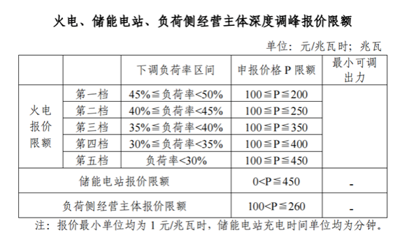 10月17日,国家能源局湖南监管办公室发布《关于明确湖南省电力辅助服务市场有关事项的通知》,提到湖南省内调峰辅助服务市场价格上限不高于我省平价新能源项目的上网电价450元/兆瓦时。其中,火电调峰第四档、第五档报价限额分别为400元/兆瓦时、450元/兆瓦时;新型储能报价限额为450元/兆瓦时。