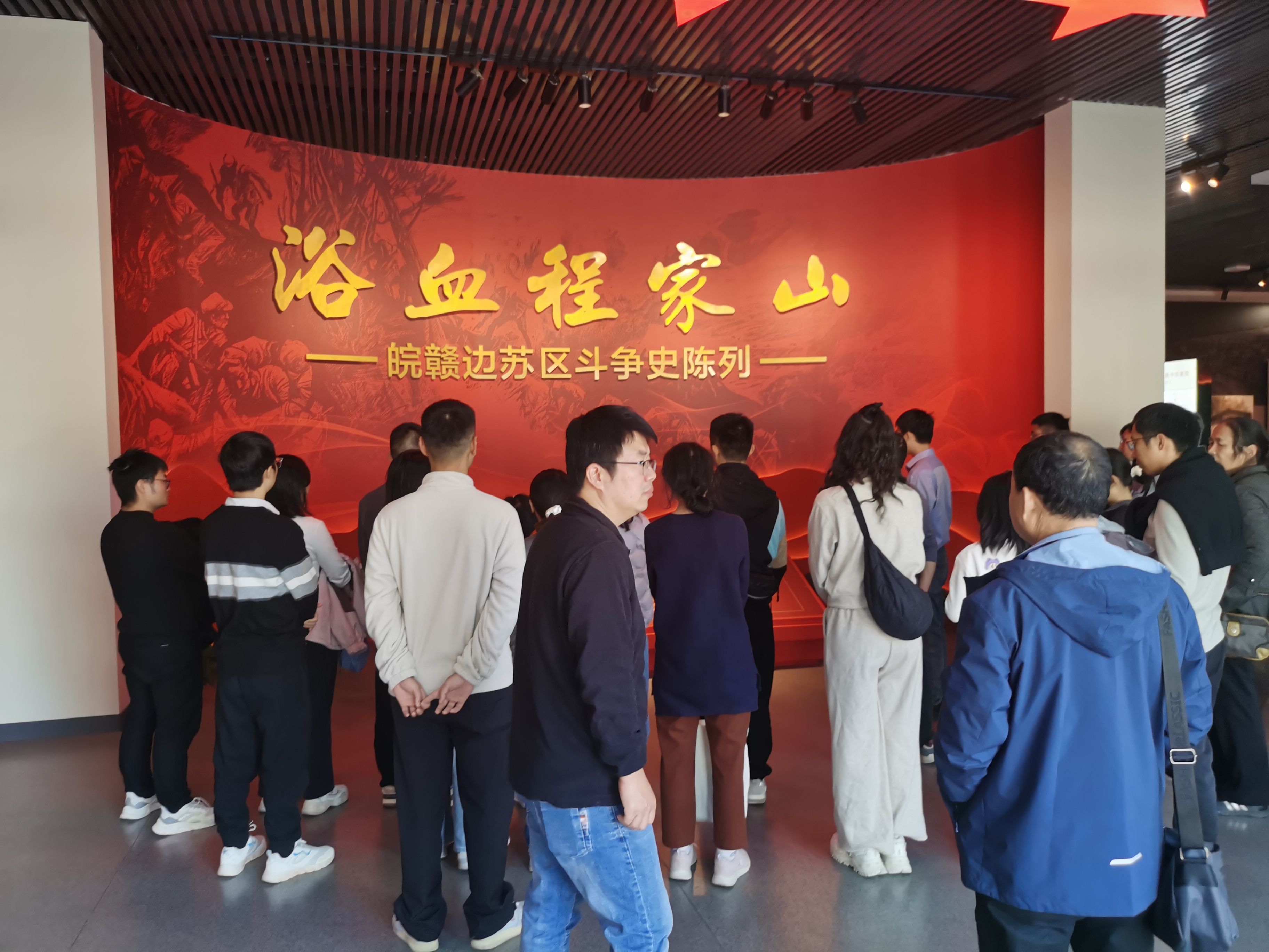 仪式结束后,队伍前往皖赣边苏区程家山历史展厅继续参观学习。第二次国内革命战争时期,党以程家山为中心建立了皖赣边新苏区,是闽浙皖赣革命根据地的重要组成部分。这里是闽浙赣省委领导下,以“方志敏式”工农武装割据思想创建起来的仅次于赣东北中心区和闽北苏区的第三块苏区。通过讲解员详细介绍,大家系统学习了皖赣边苏区的创建与发展历程,对这段波澜壮阔的革命历史有了更为全面和深刻的认识,从党的光辉历史中汲取了砥砺前行的强大力量。