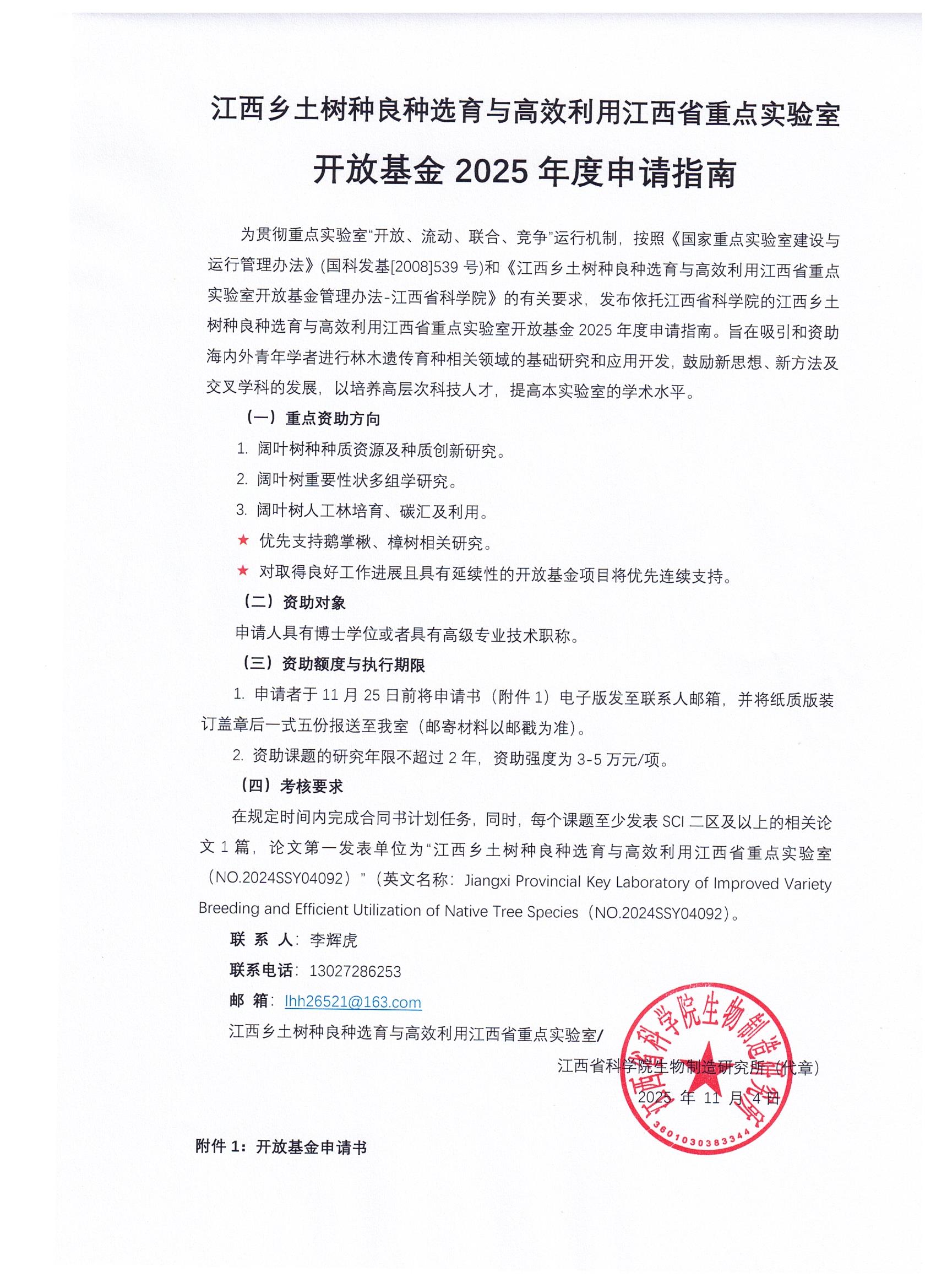 江西乡土树种良种选育与高效利用江西省重点实验室开放基金申请书