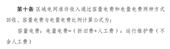 《区域电网输电价格定价办法(修订征求意见稿)》明确了输电价格的计算方法,区域电网准许收入通过容量电费和电量电费两种方式回收。容量电费与电量电费比例计算公式为:
