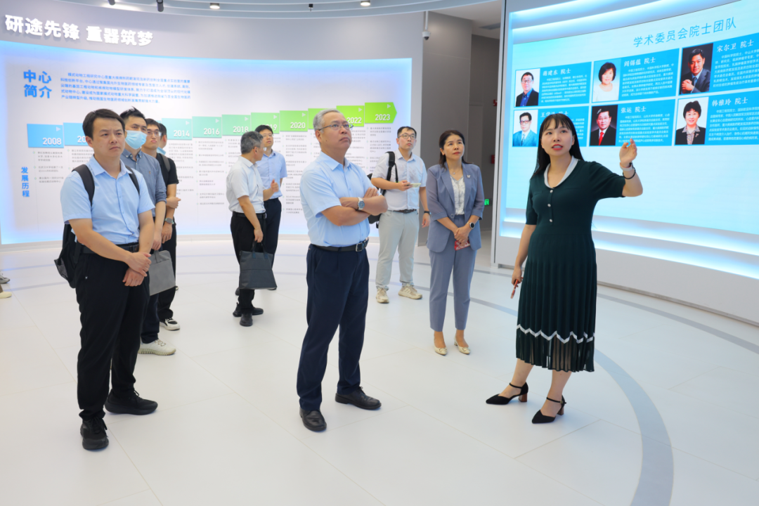 章国勇一行先后调研了赣南创新与转化医学研究院(下称“研究院”)精准医学中心、模式动物工程研究中心、展厅及成果转化间、创新药物研发中心等核心科研区域,详细了解研究院在科研布局、平台建设与成果转化等方面的实践与成效。