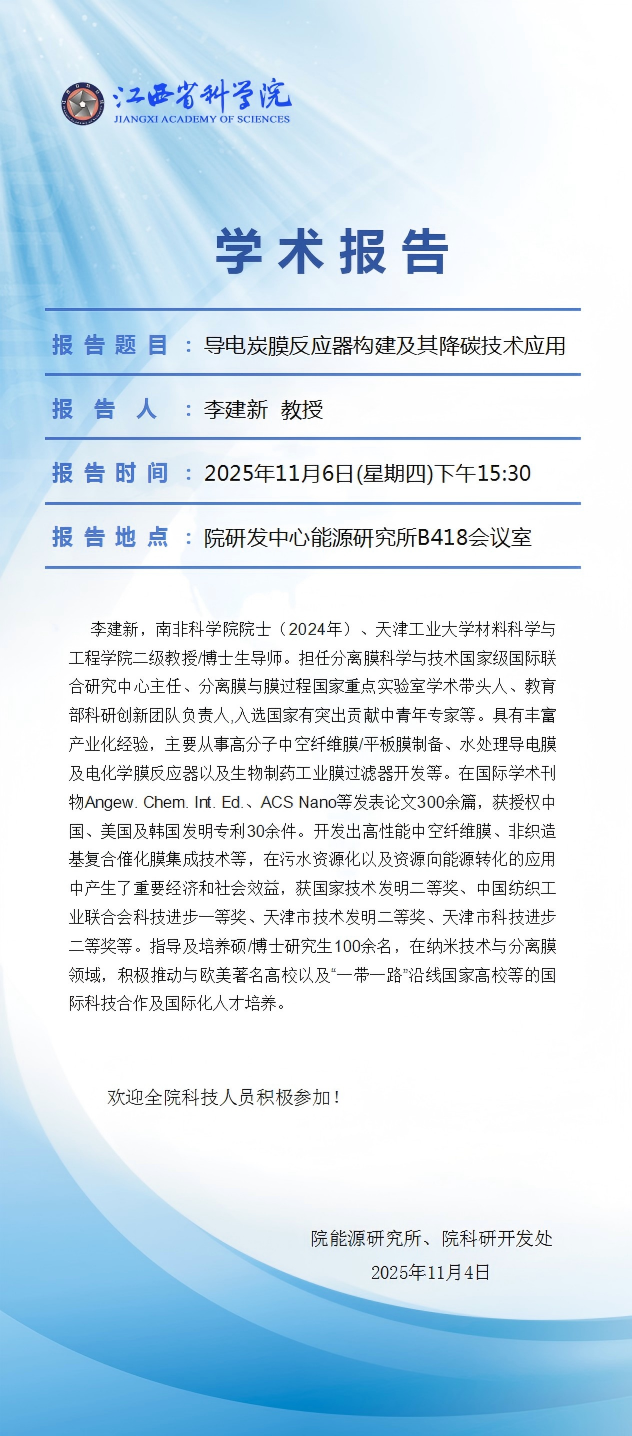 学术报告:导电炭膜反应器构建及其降碳技术应用